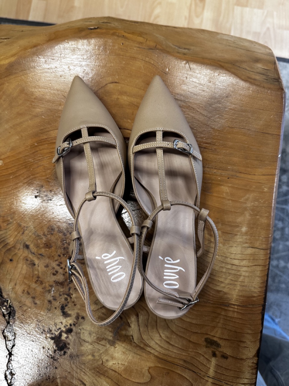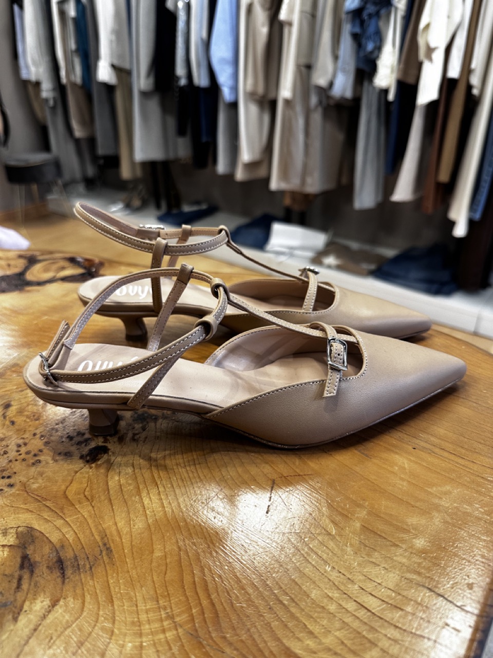 Decoltรจ in pelle color nude, con cinturino